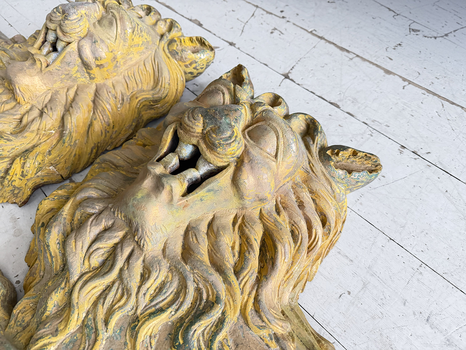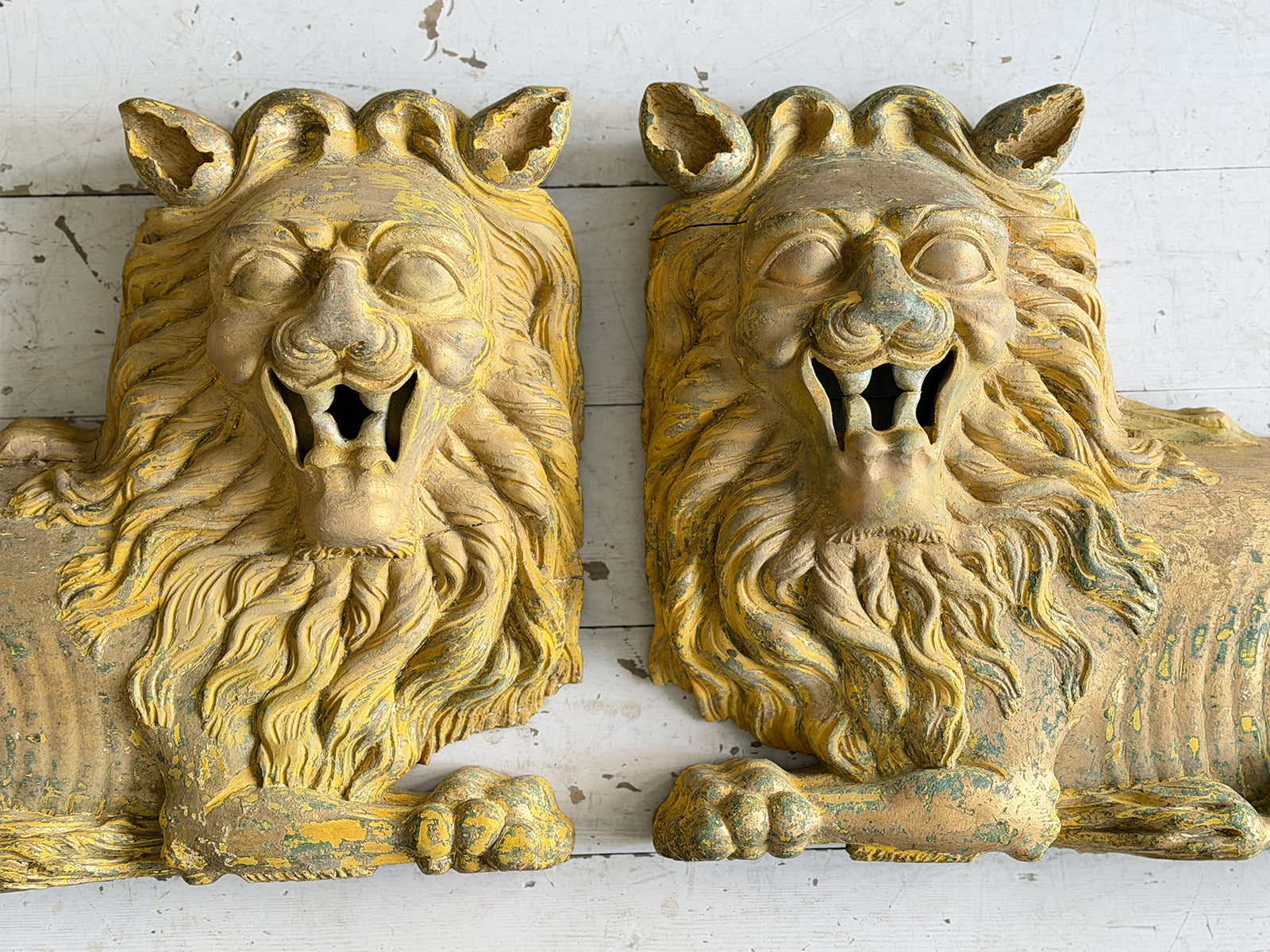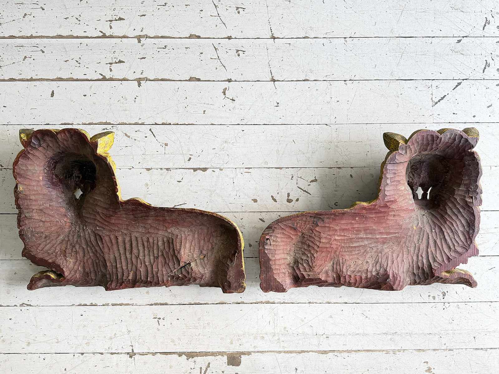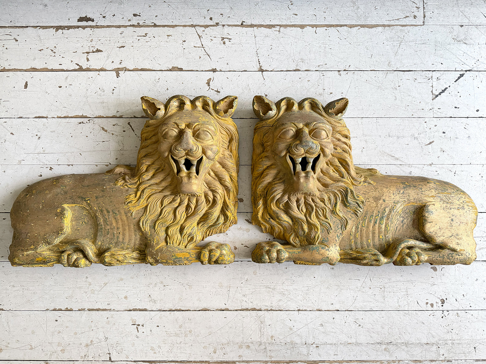 A Large Pair of 18th C Hand Carved Chinese Foo Dog Wall Sculptures