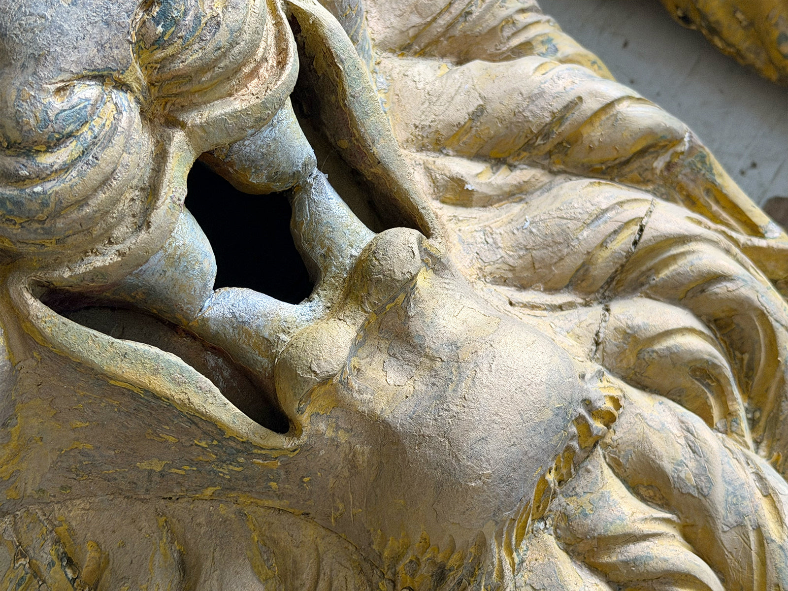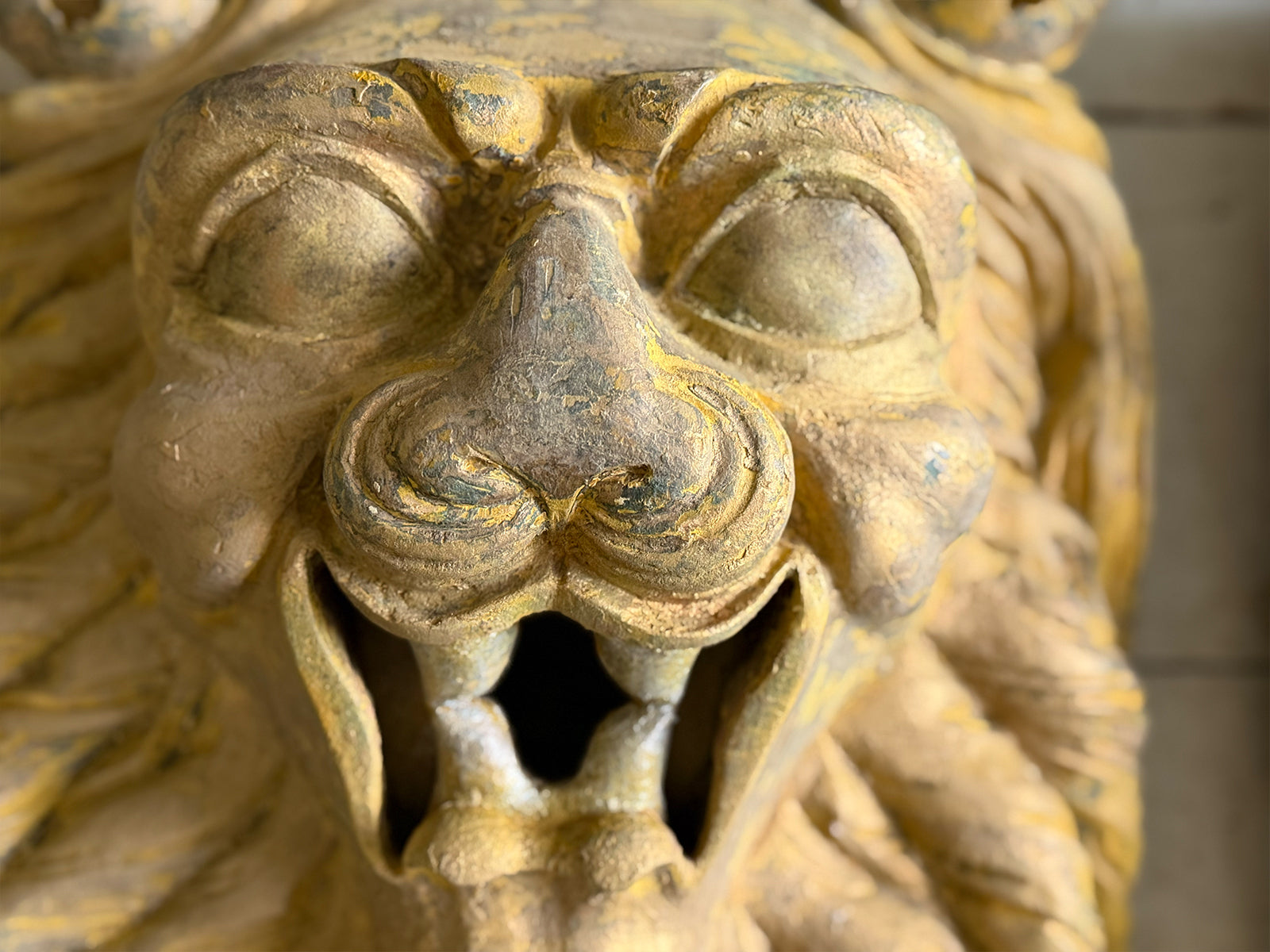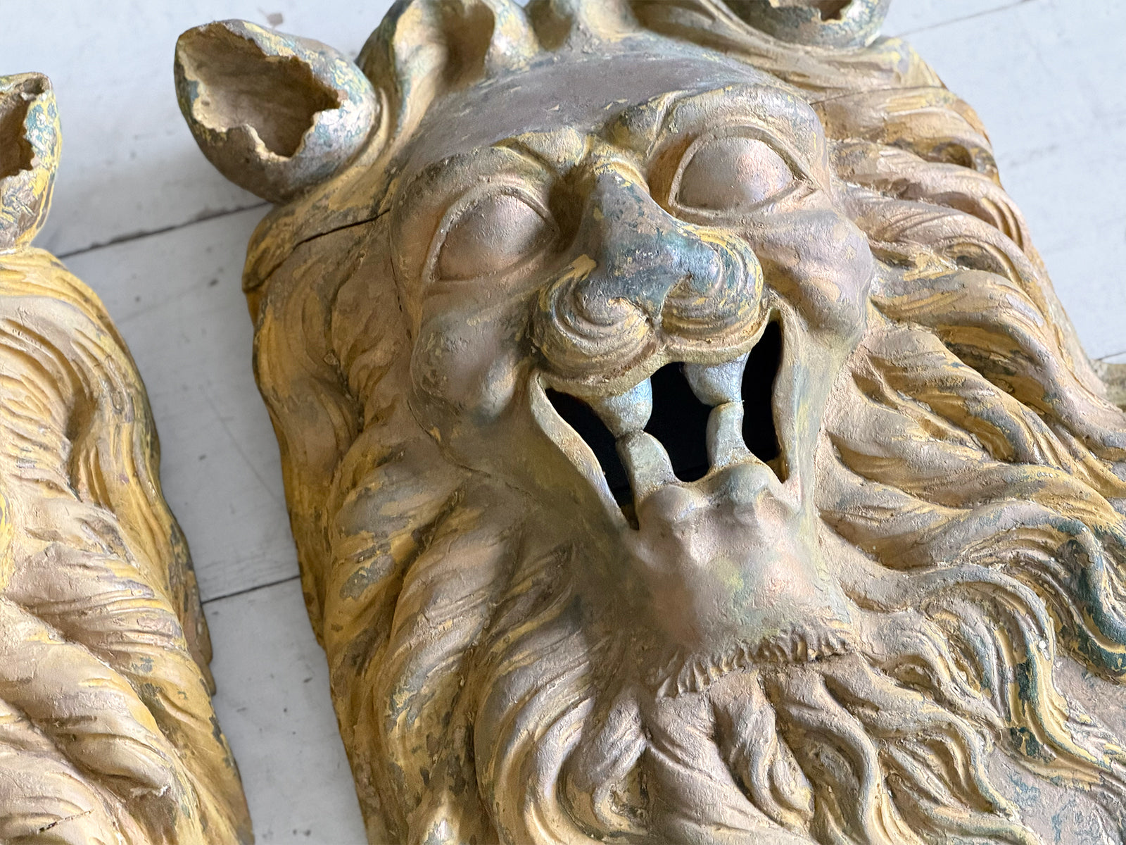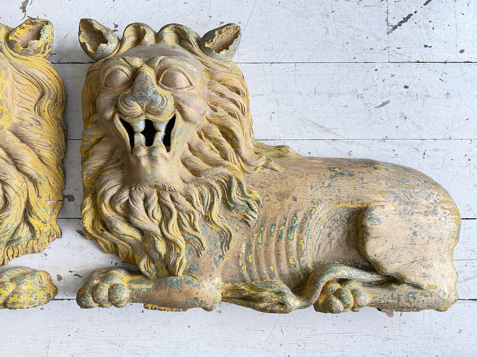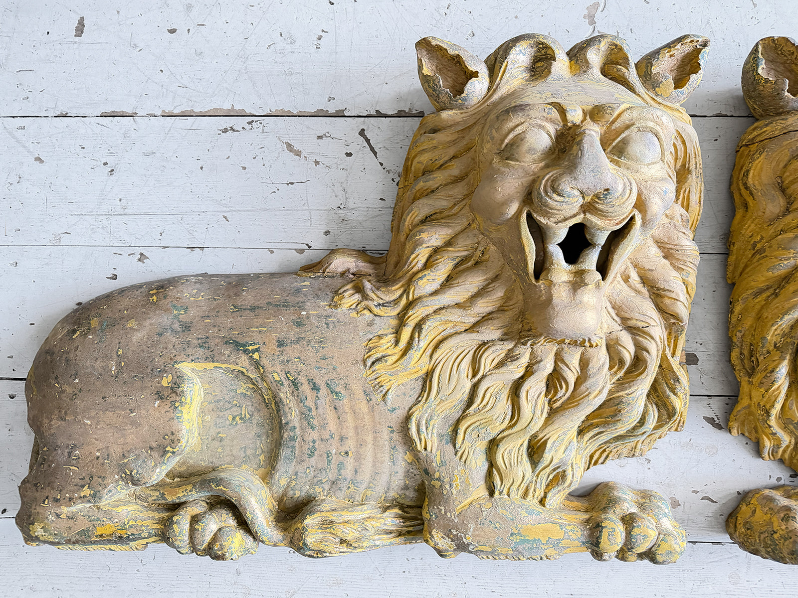 A Large Pair of 18th C Hand Carved Chinese Foo Dog Wall Sculptures