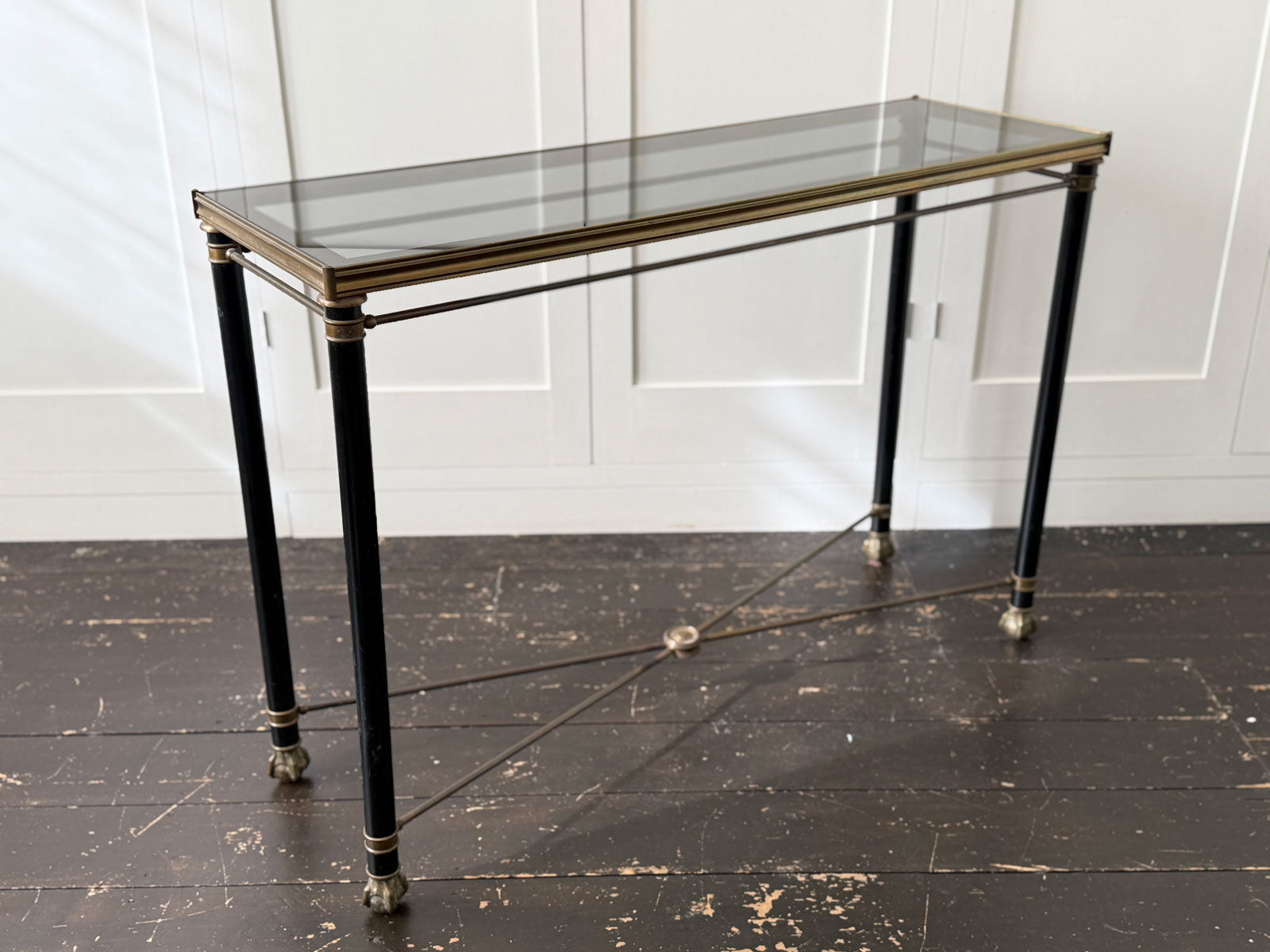 A 1950's French Brass Polychrome & Glass Console Table by Maison Jansen L