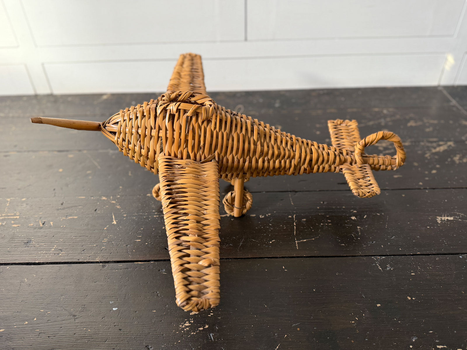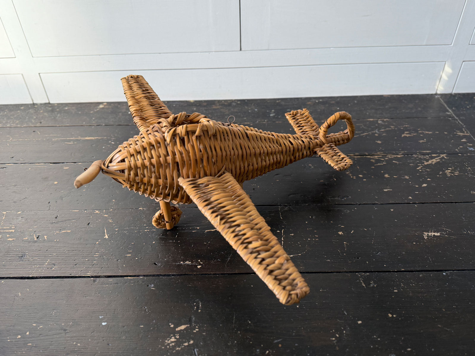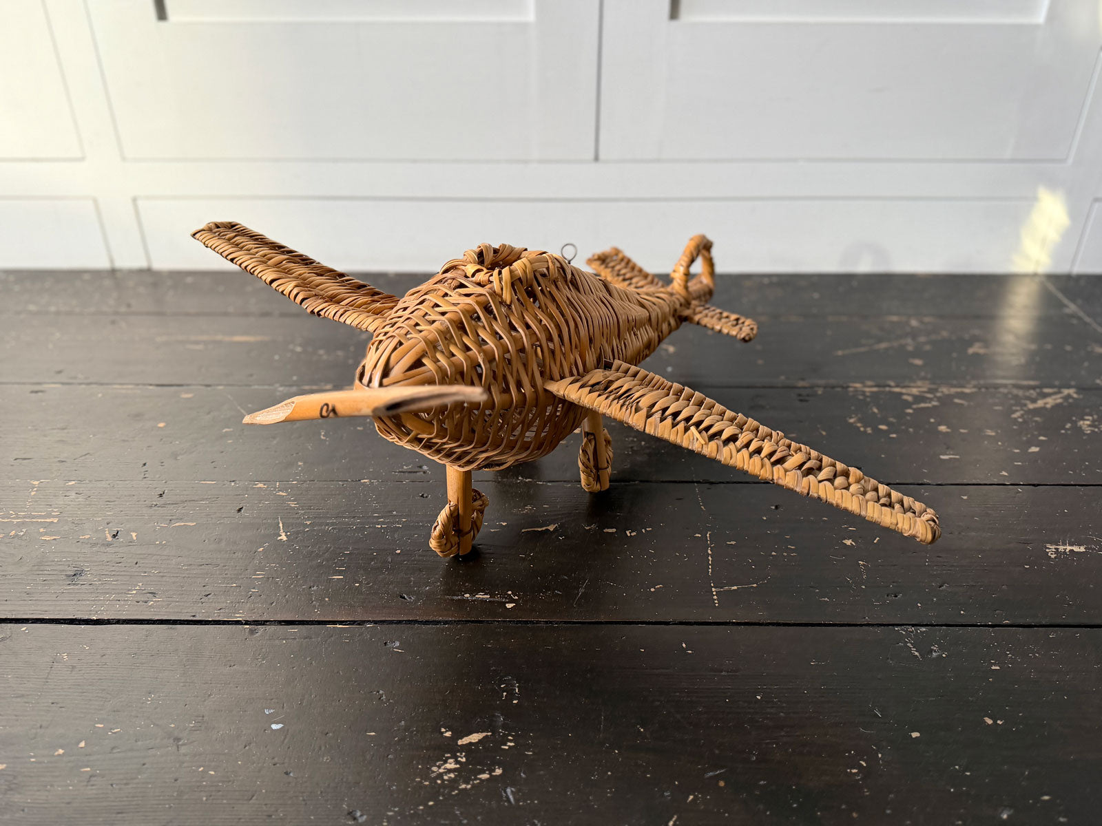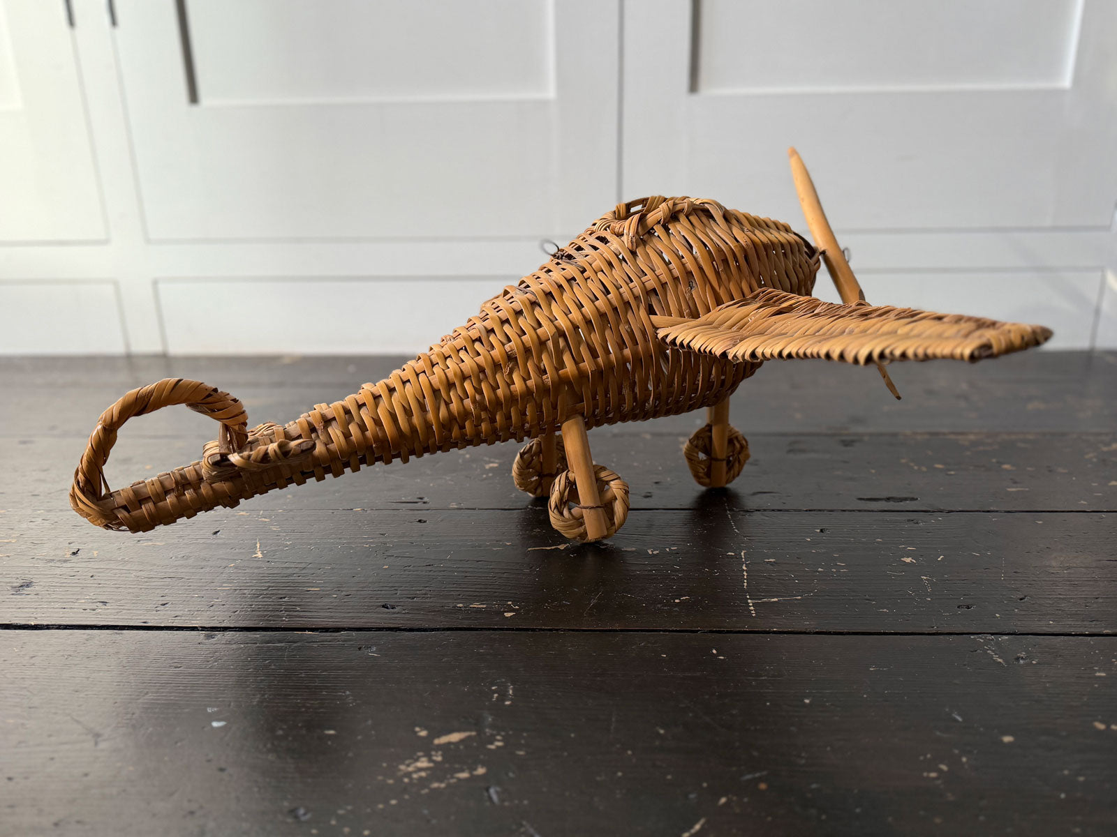A charming vintage rattan aeroplane with hoop for hanging taken from an old French toy store.