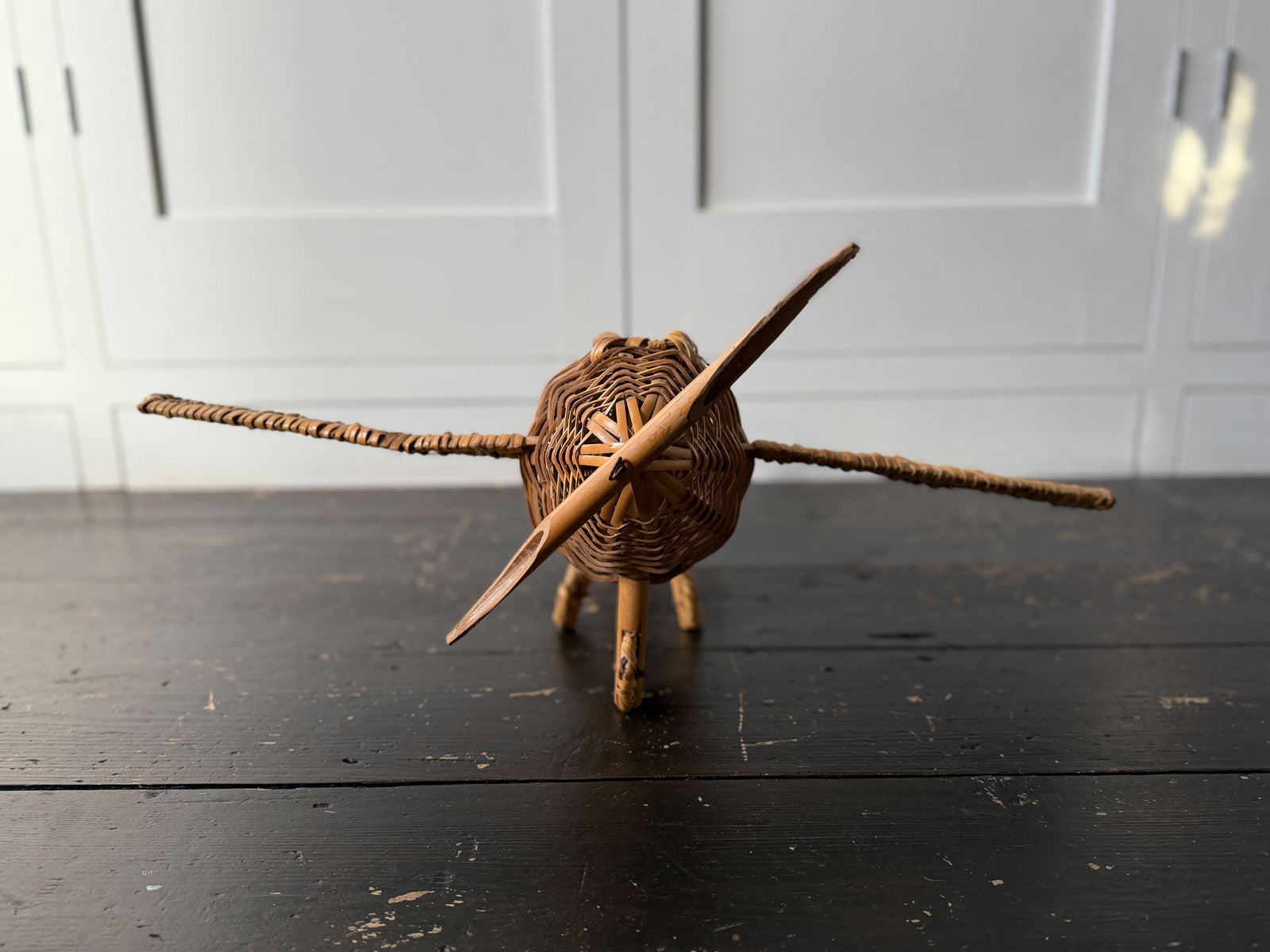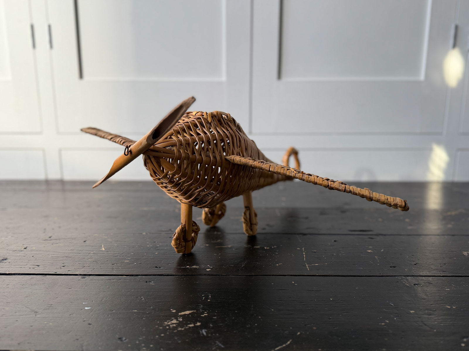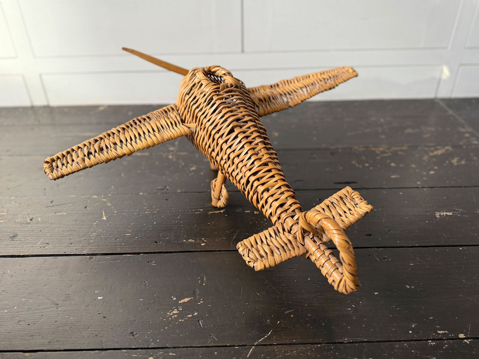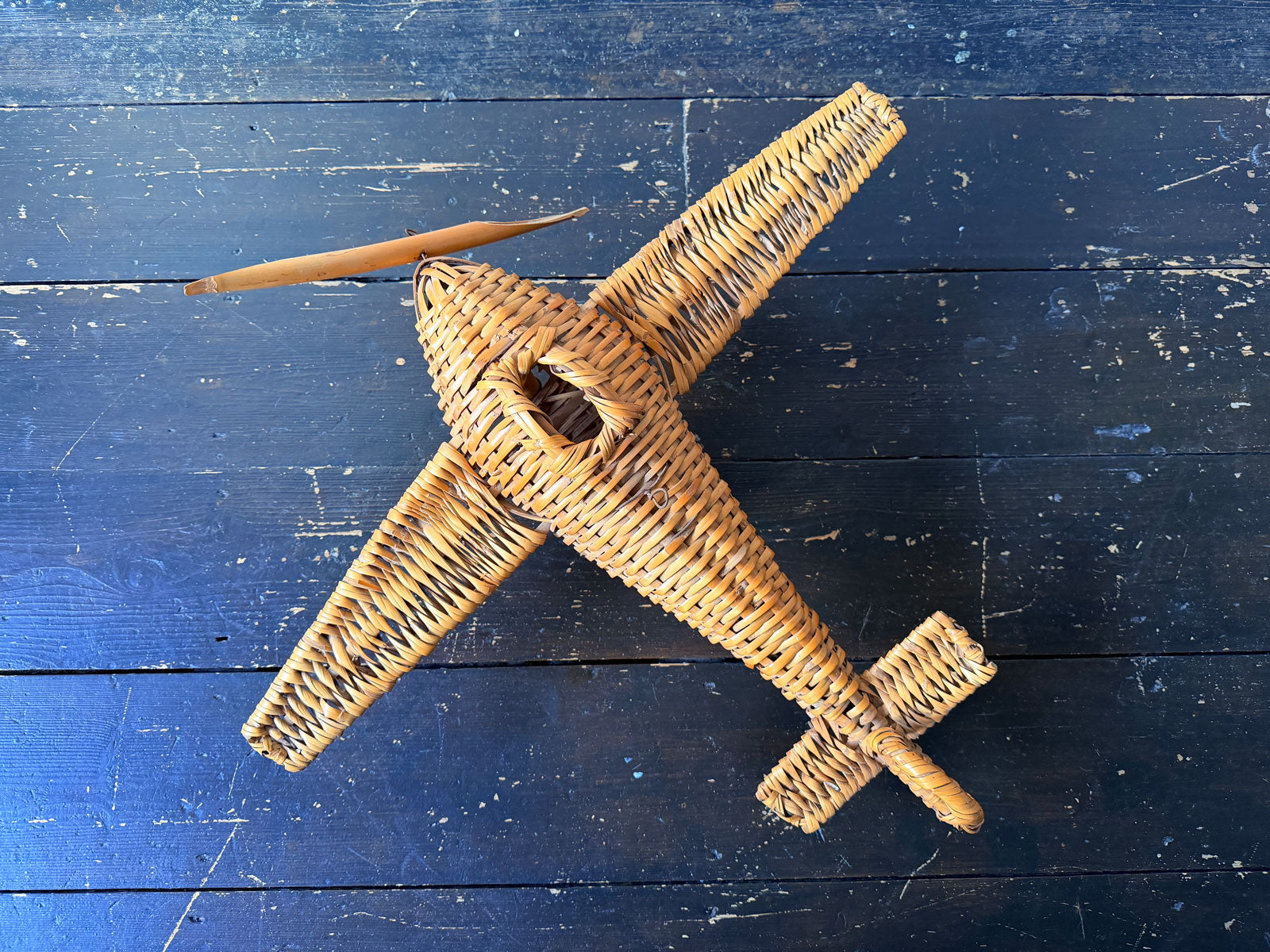 A charming vintage rattan aeroplane with hoop for hanging taken from an old French toy store.