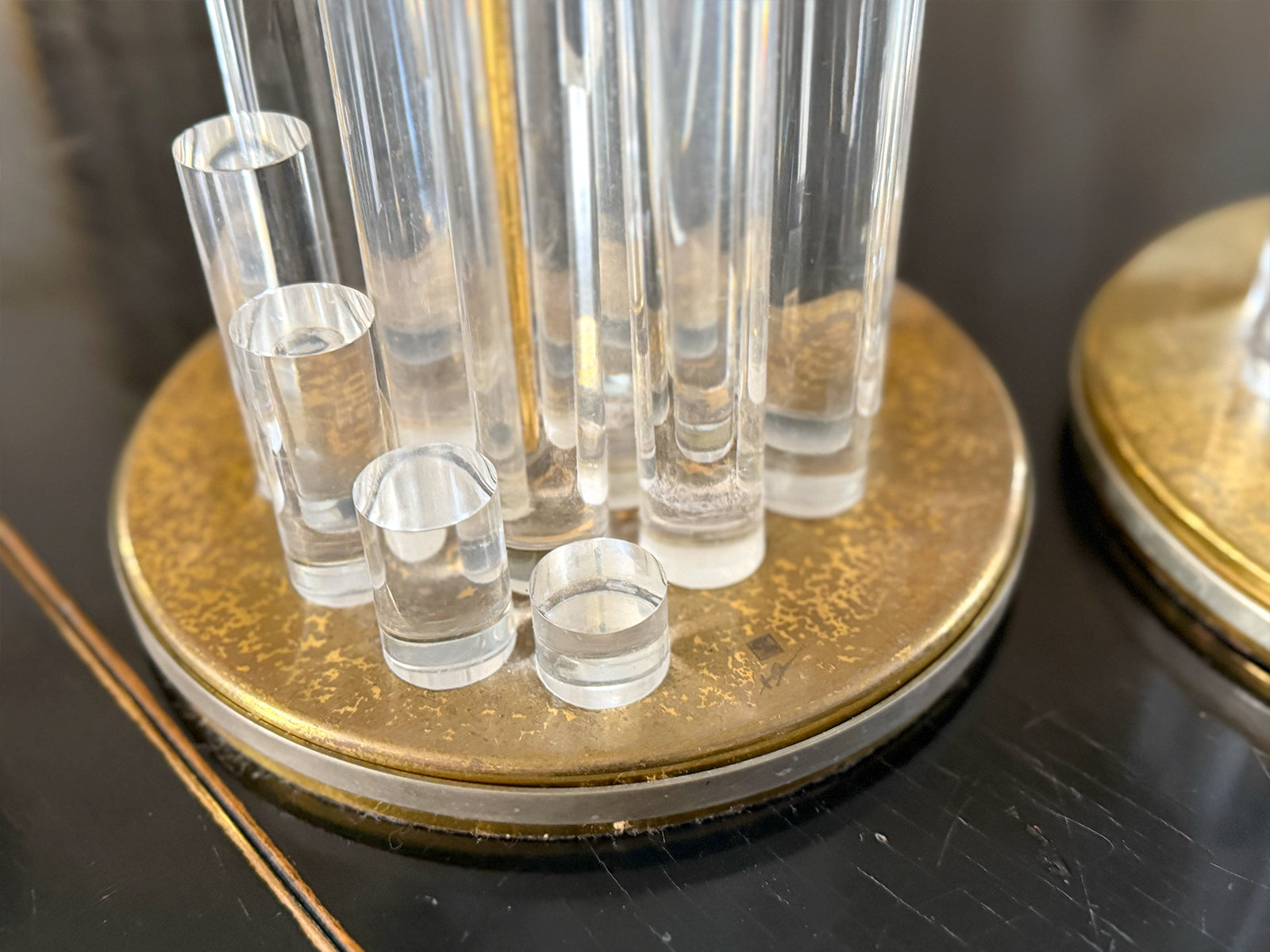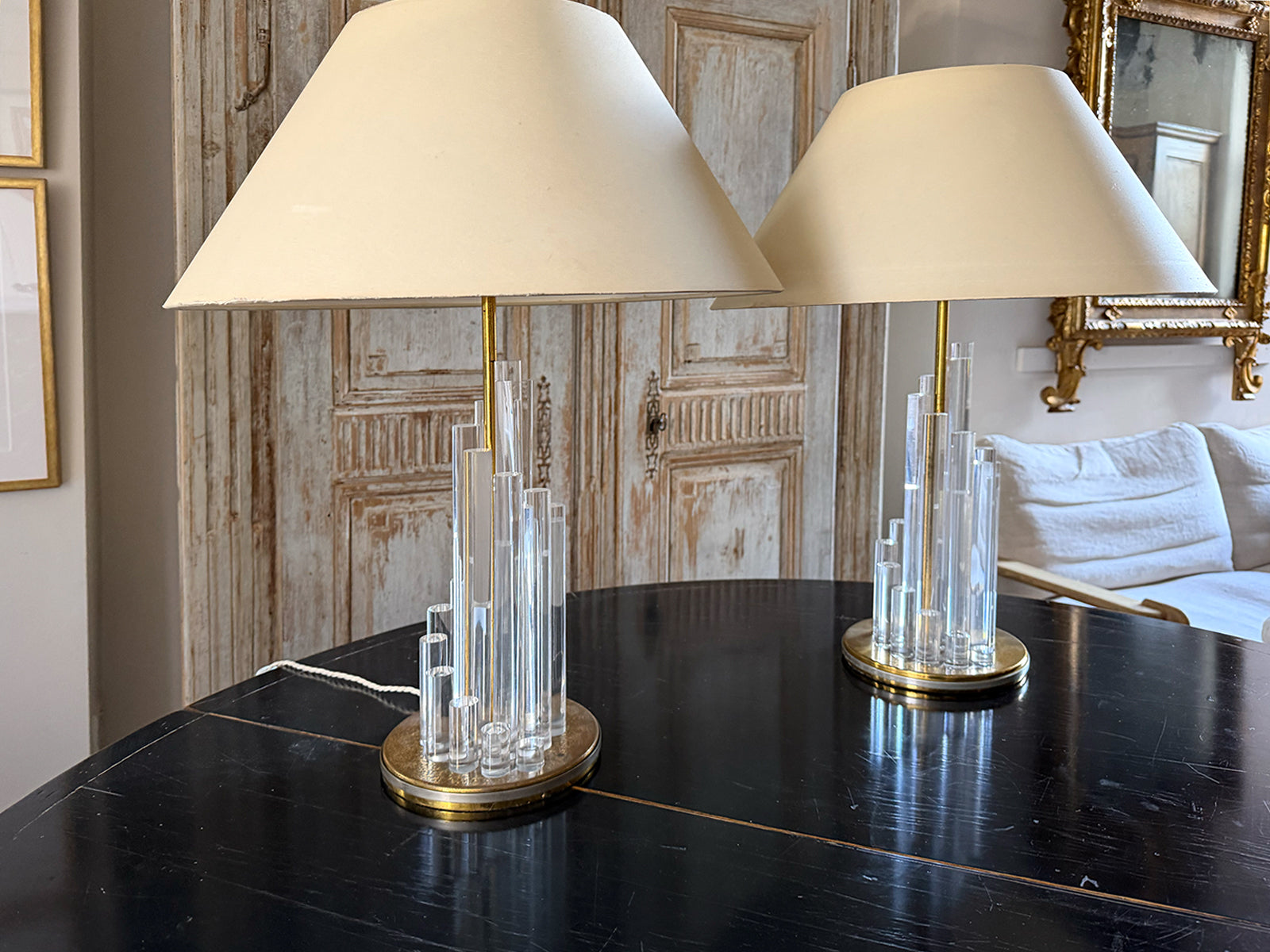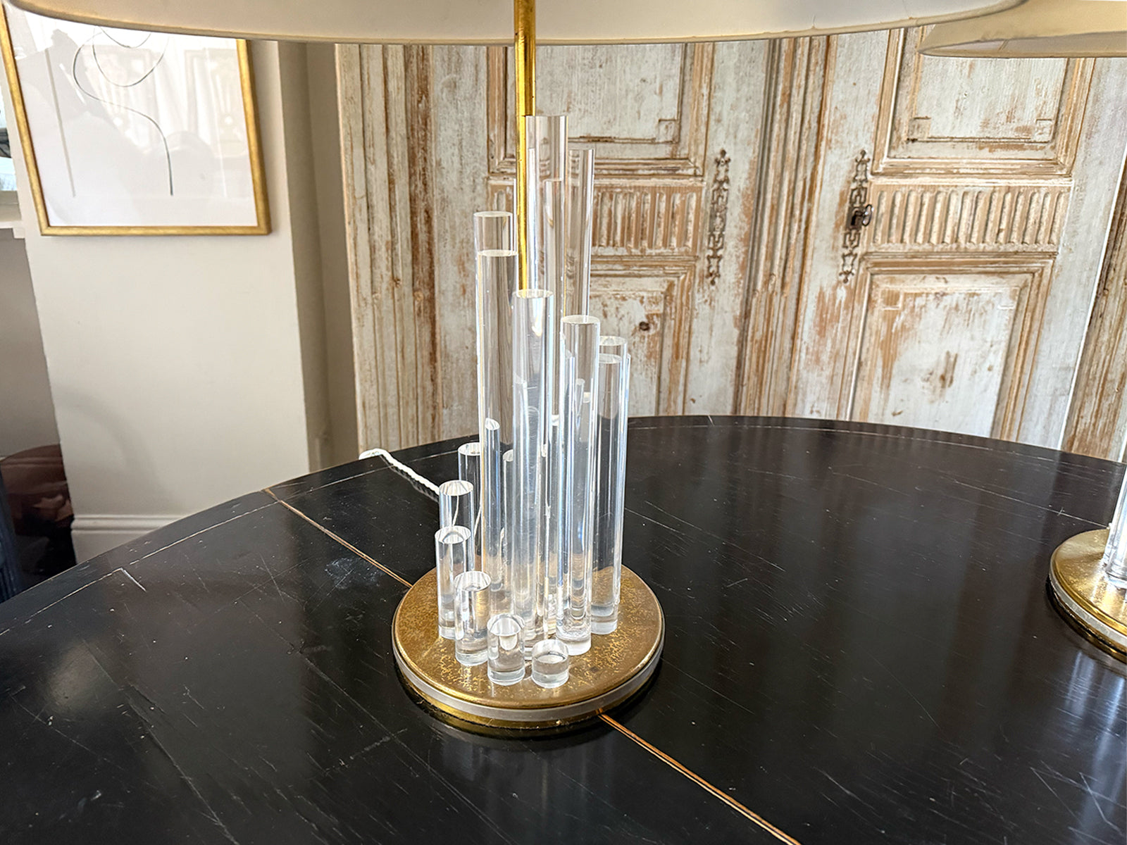A Pair of 1970's Italian Perspex and Brass Plated Table Lamps