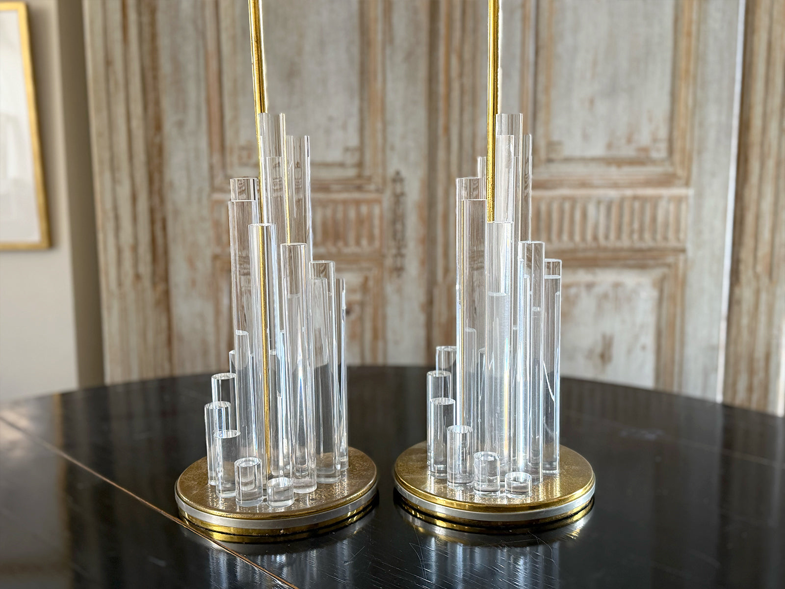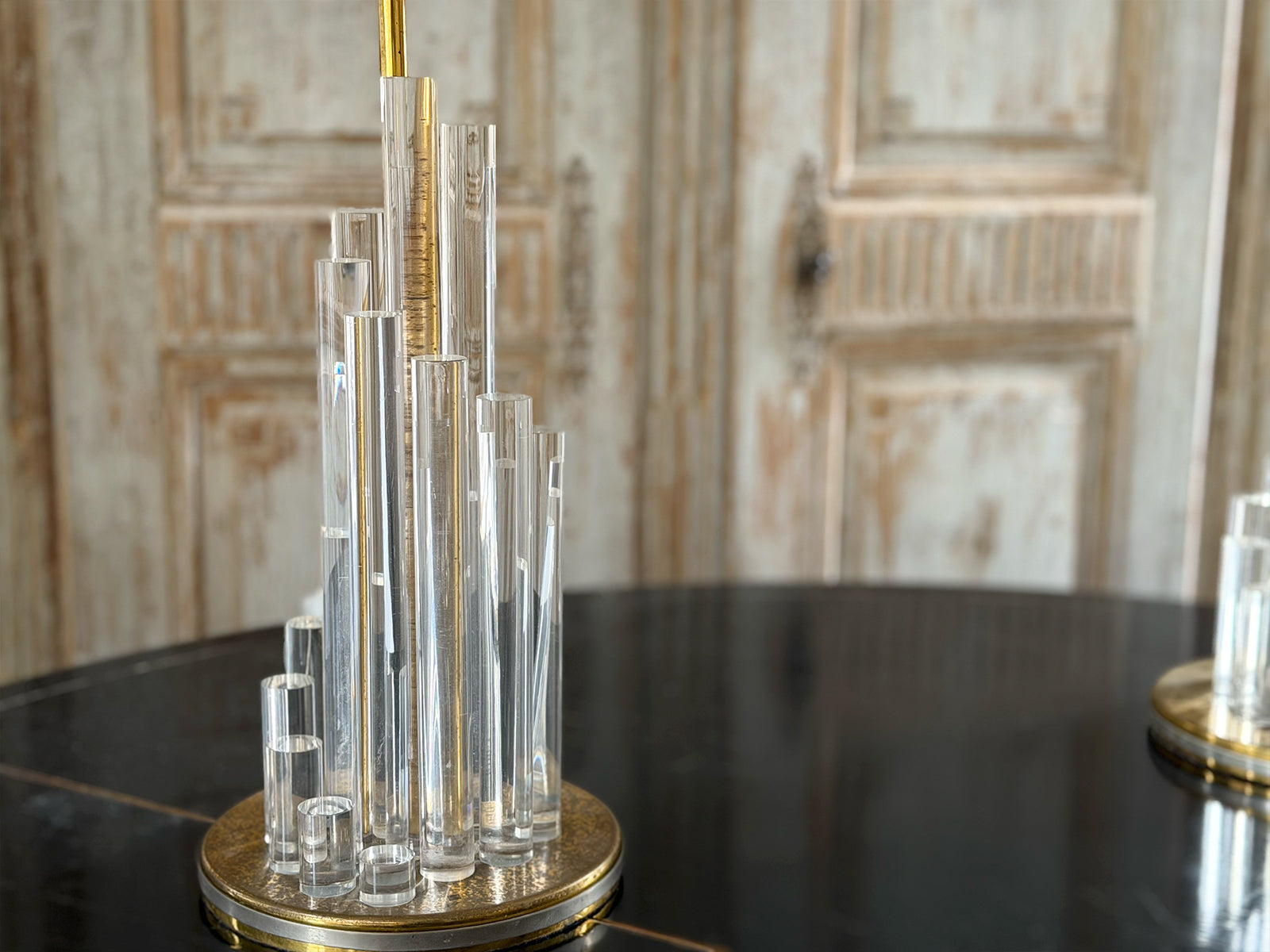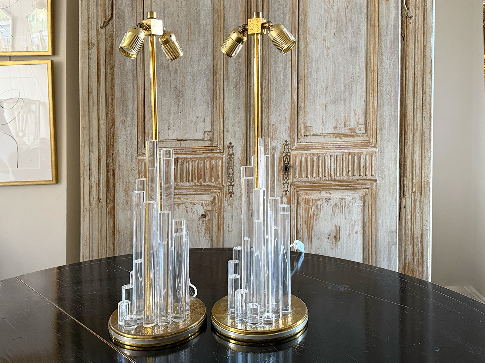 A Pair of 1970's Italian Perspex and Brass Plated Table Lamps