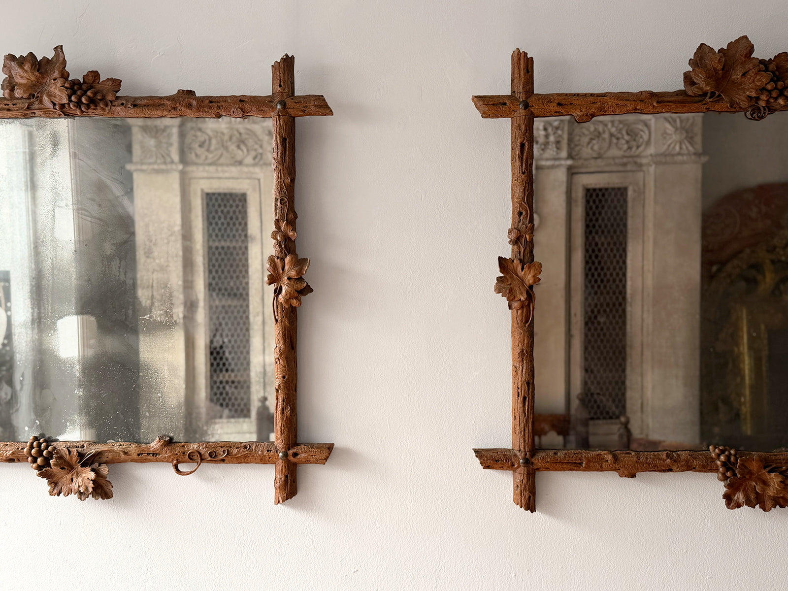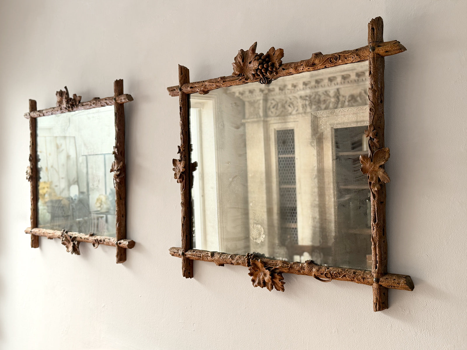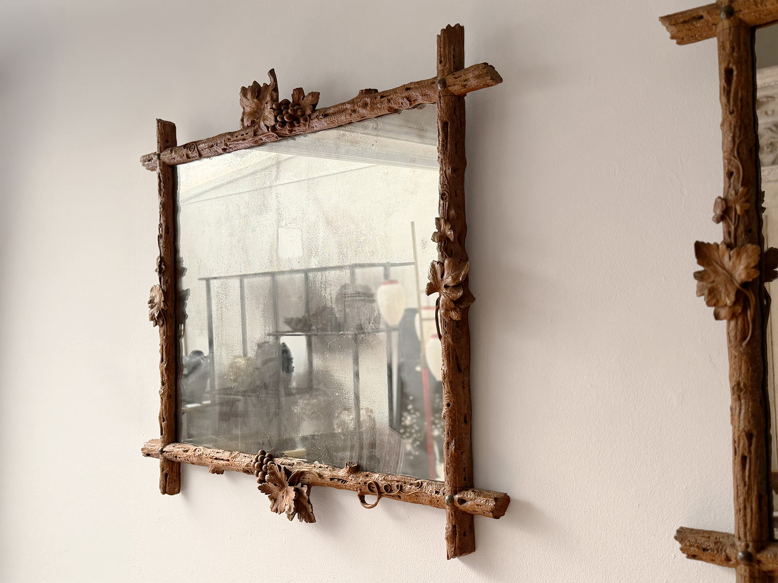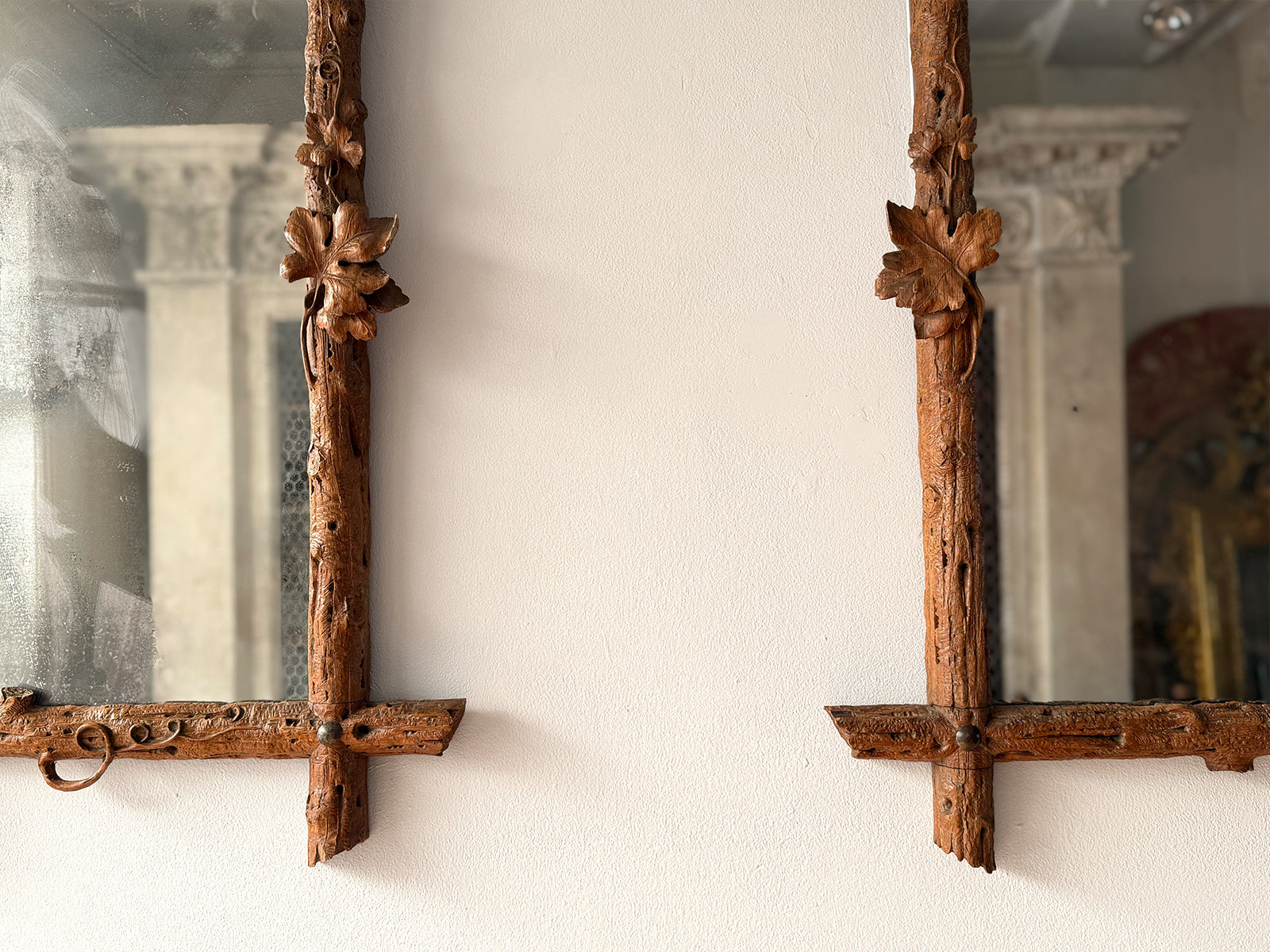 A Pair of 19th C Black Forest Folk Art Carved Vine Mirrors