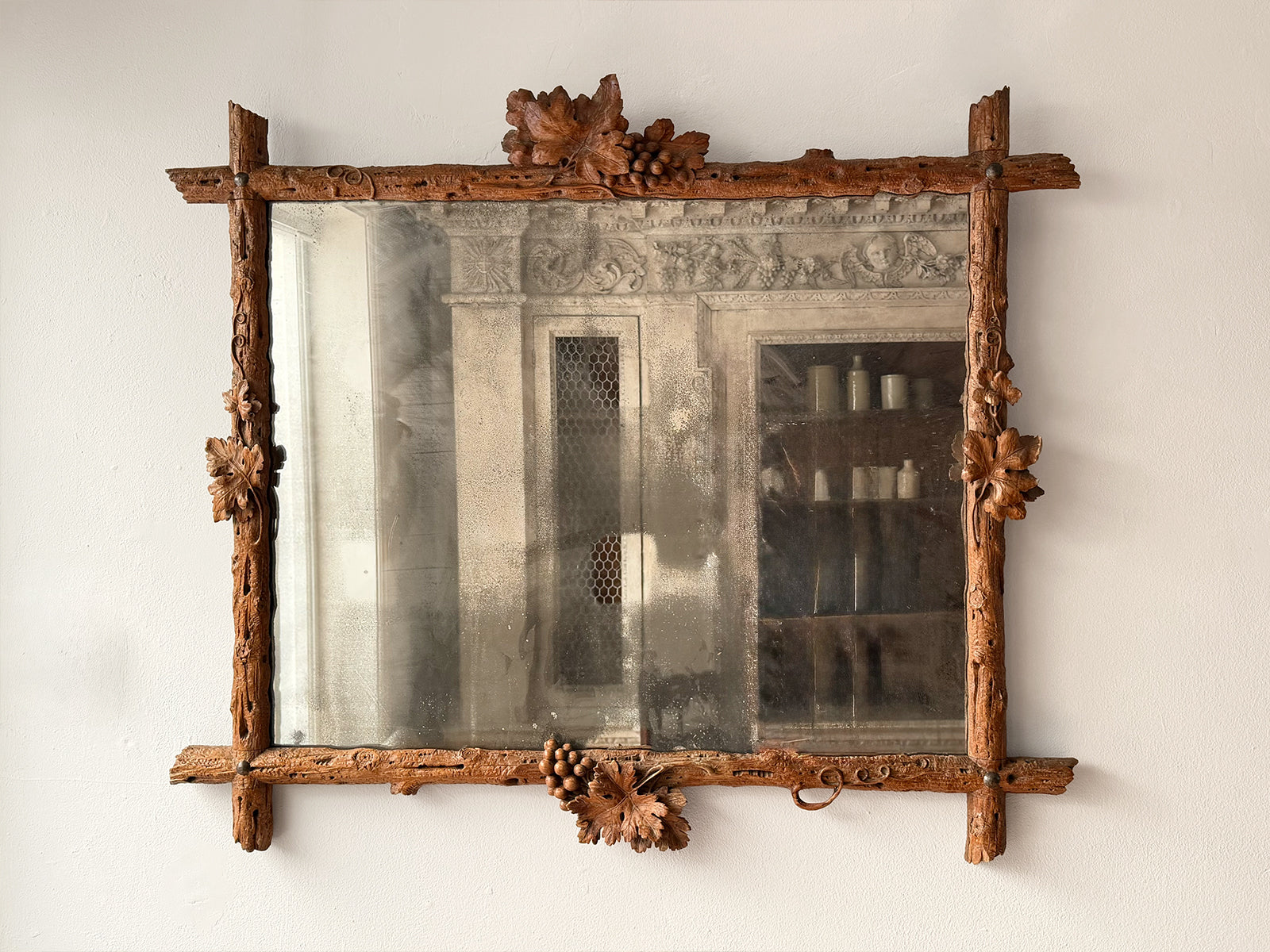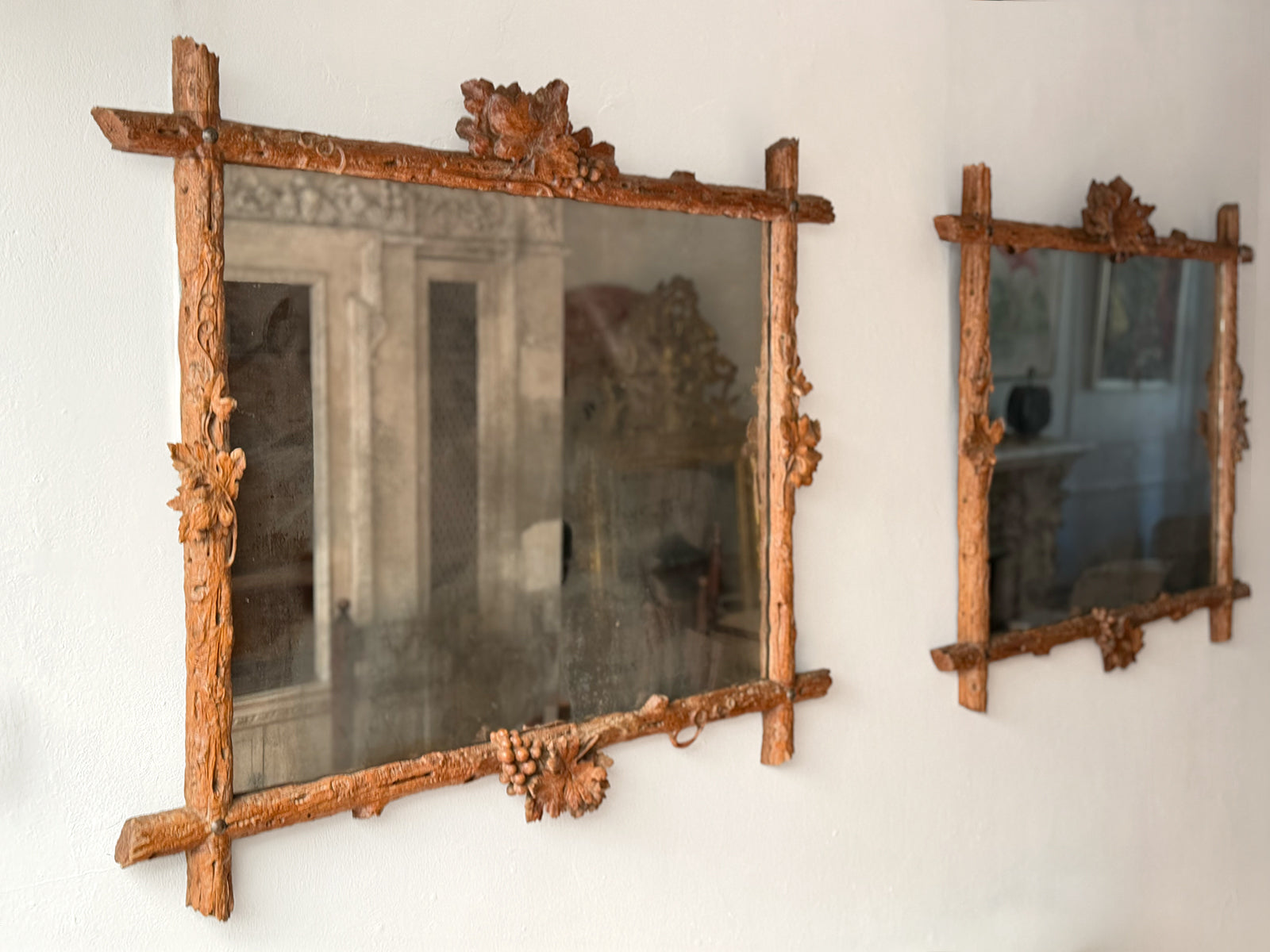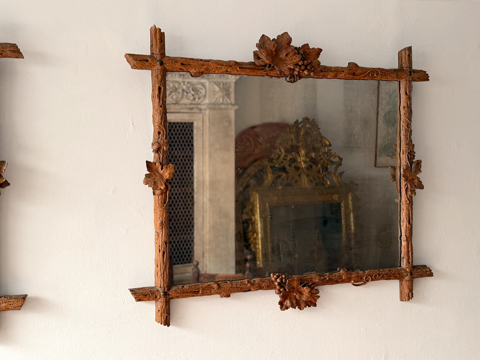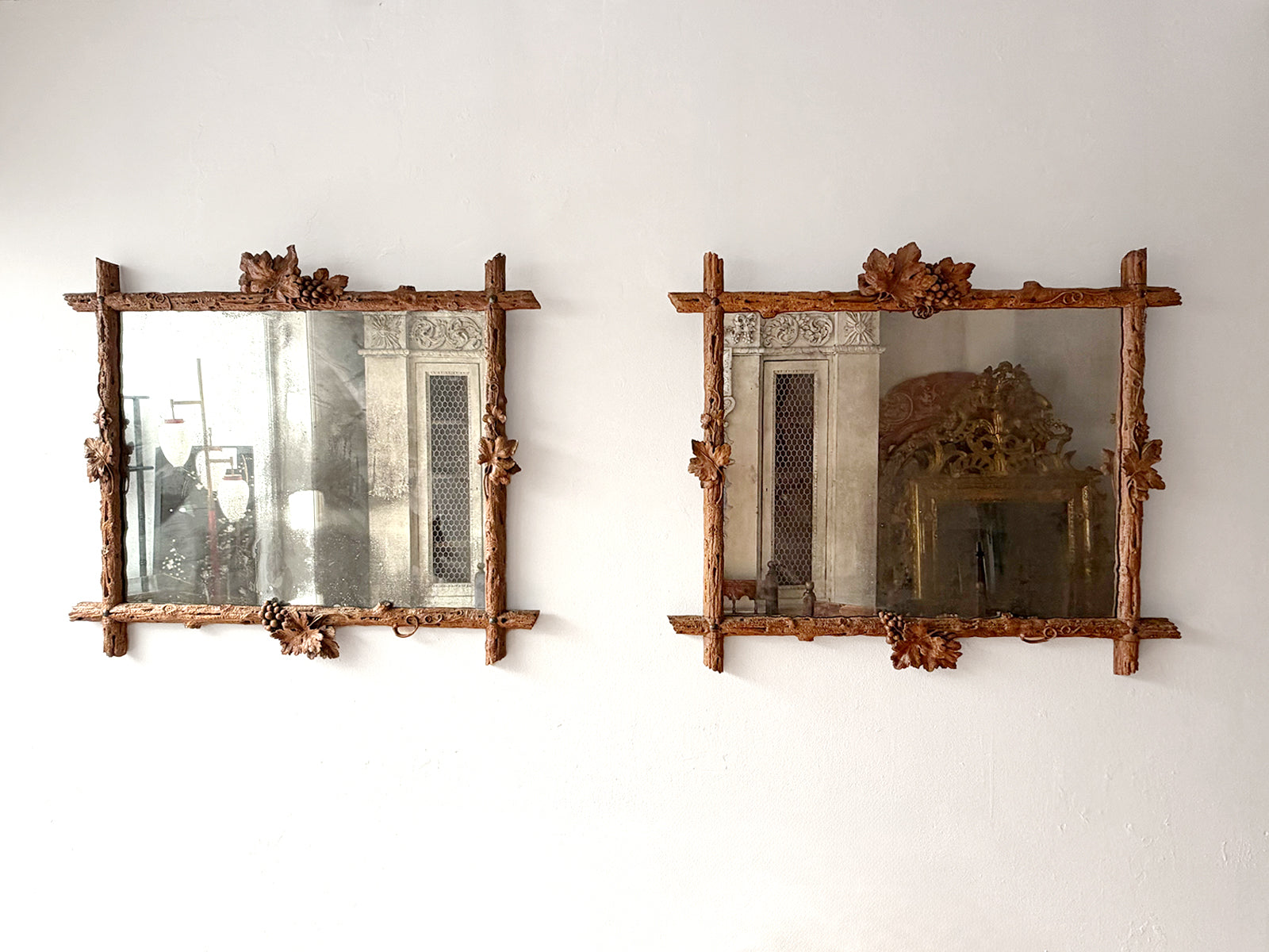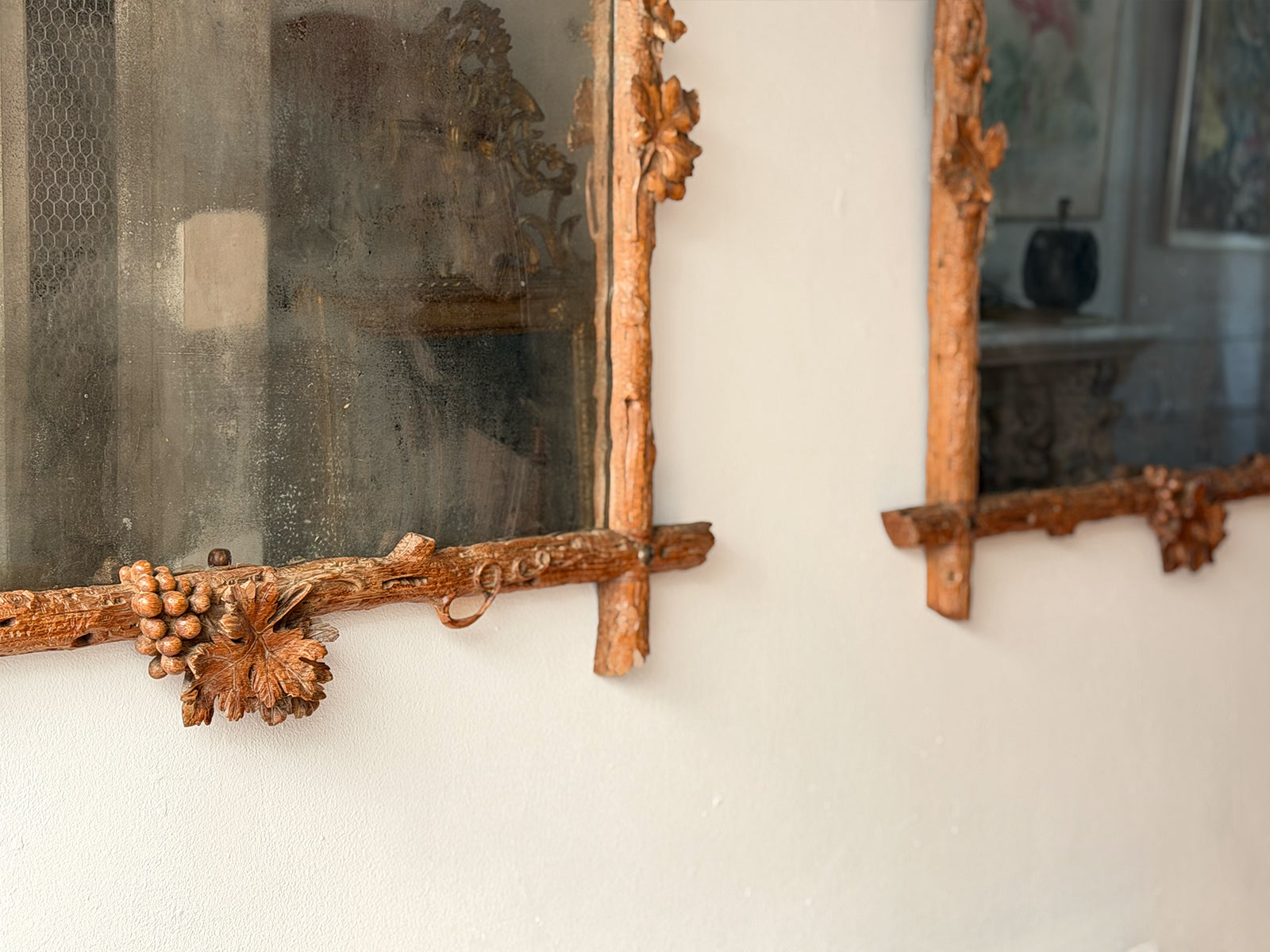 A Pair of 19th C Black Forest Folk Art Carved Vine Mirrors