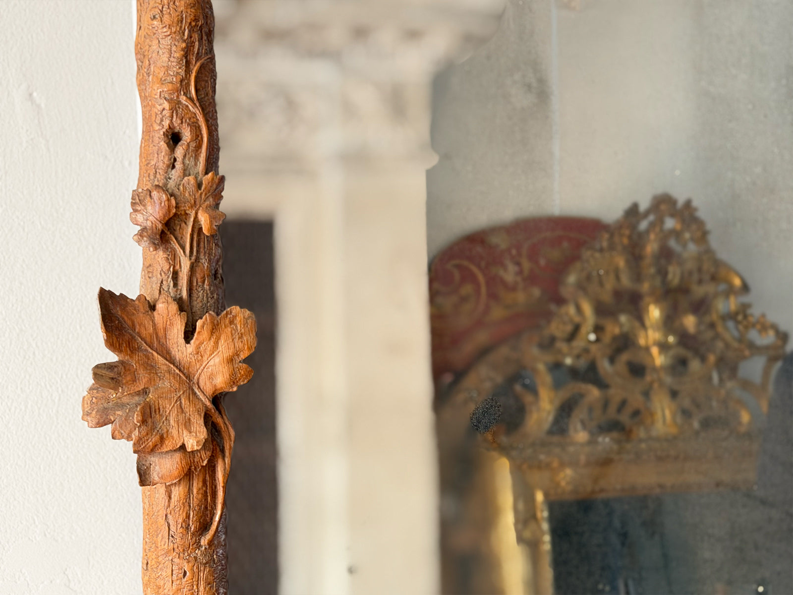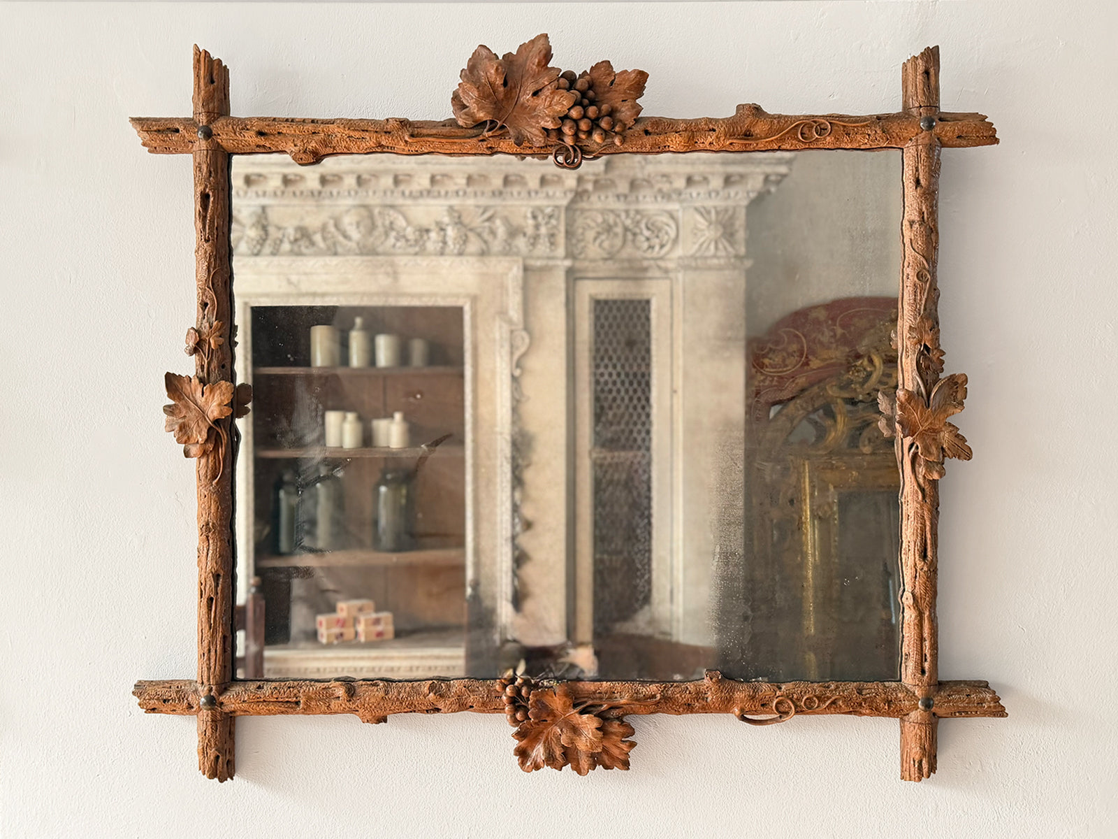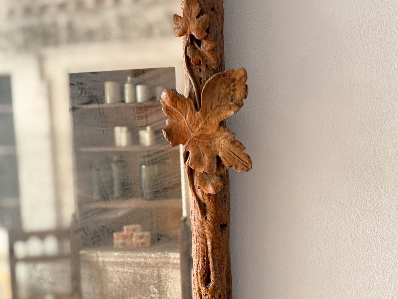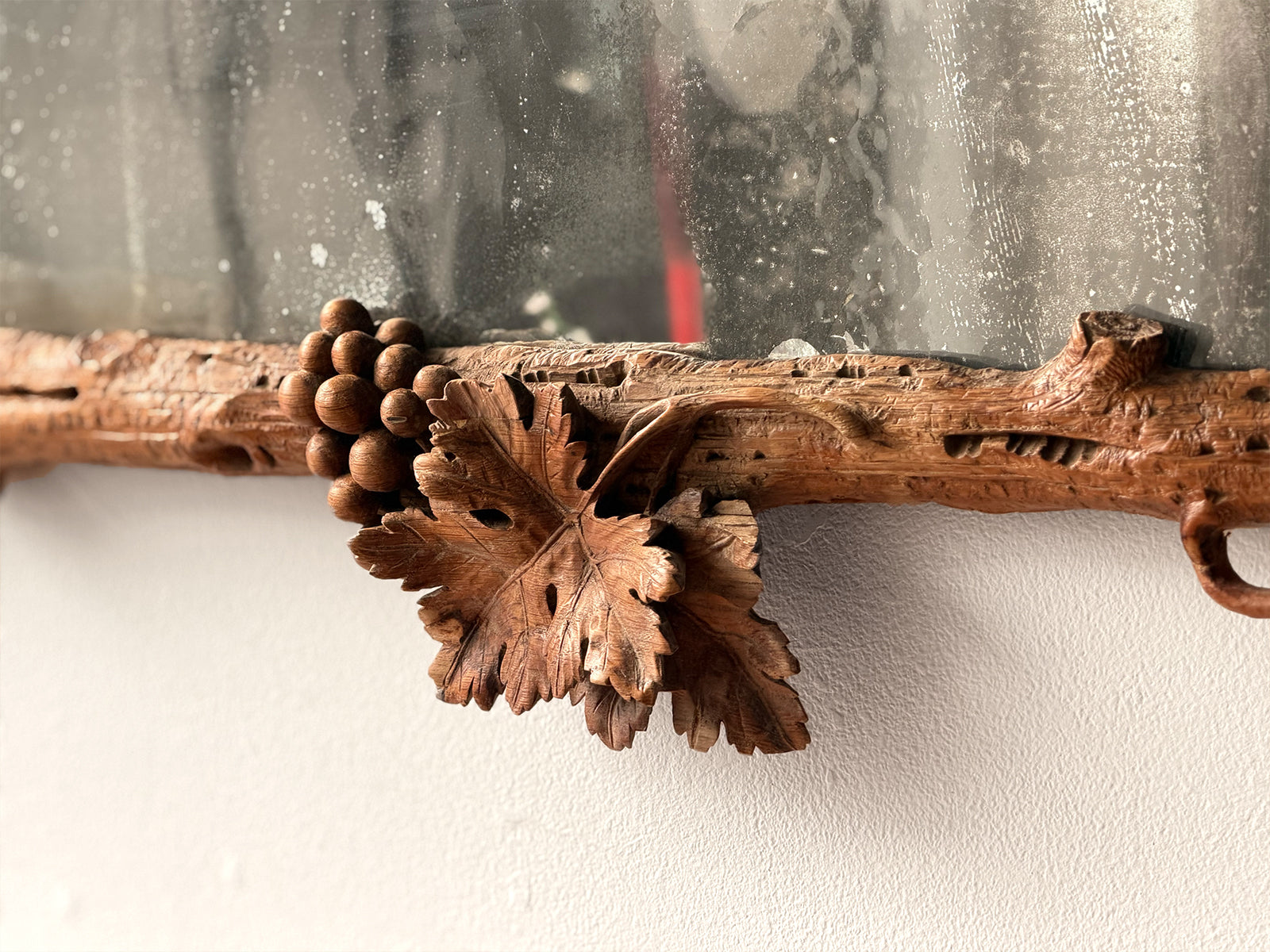 A Pair of 19th C Black Forest Folk Art Carved Vine Mirrors