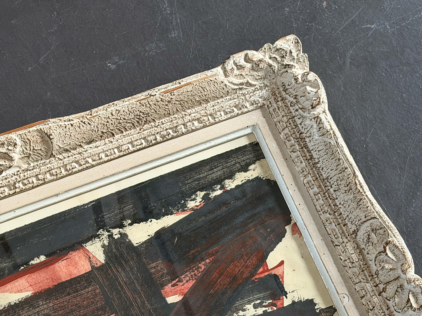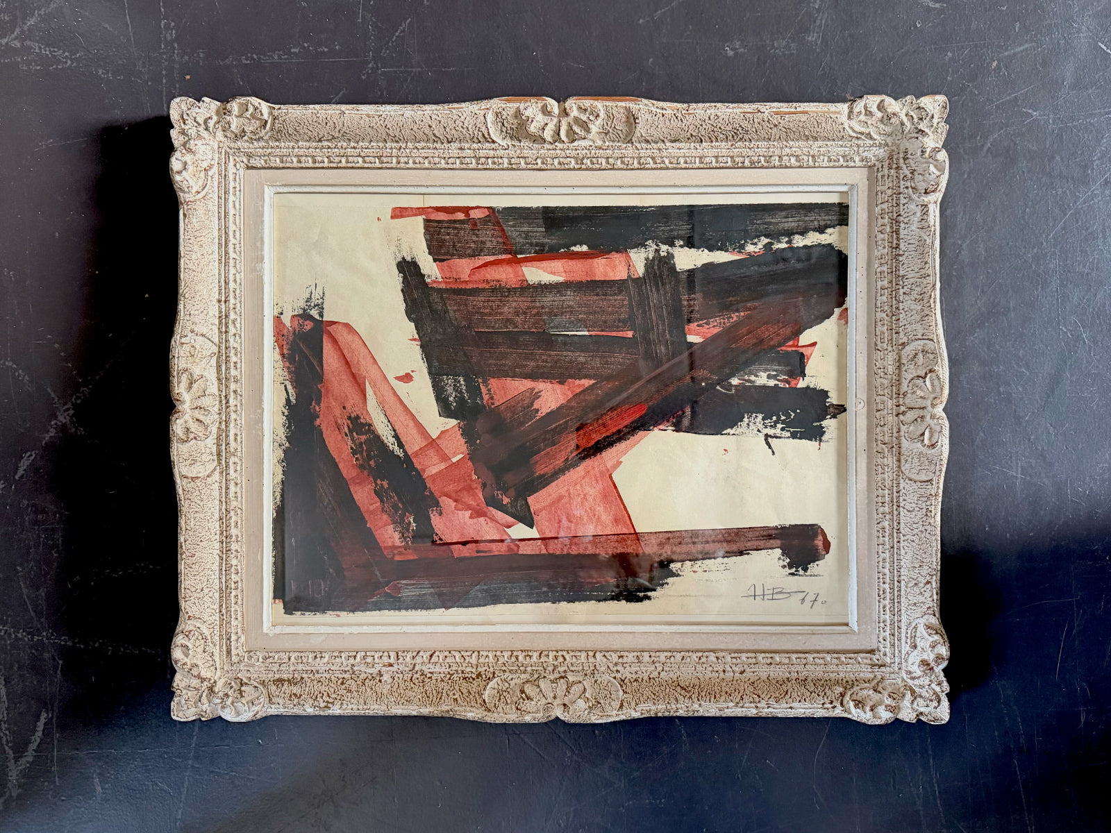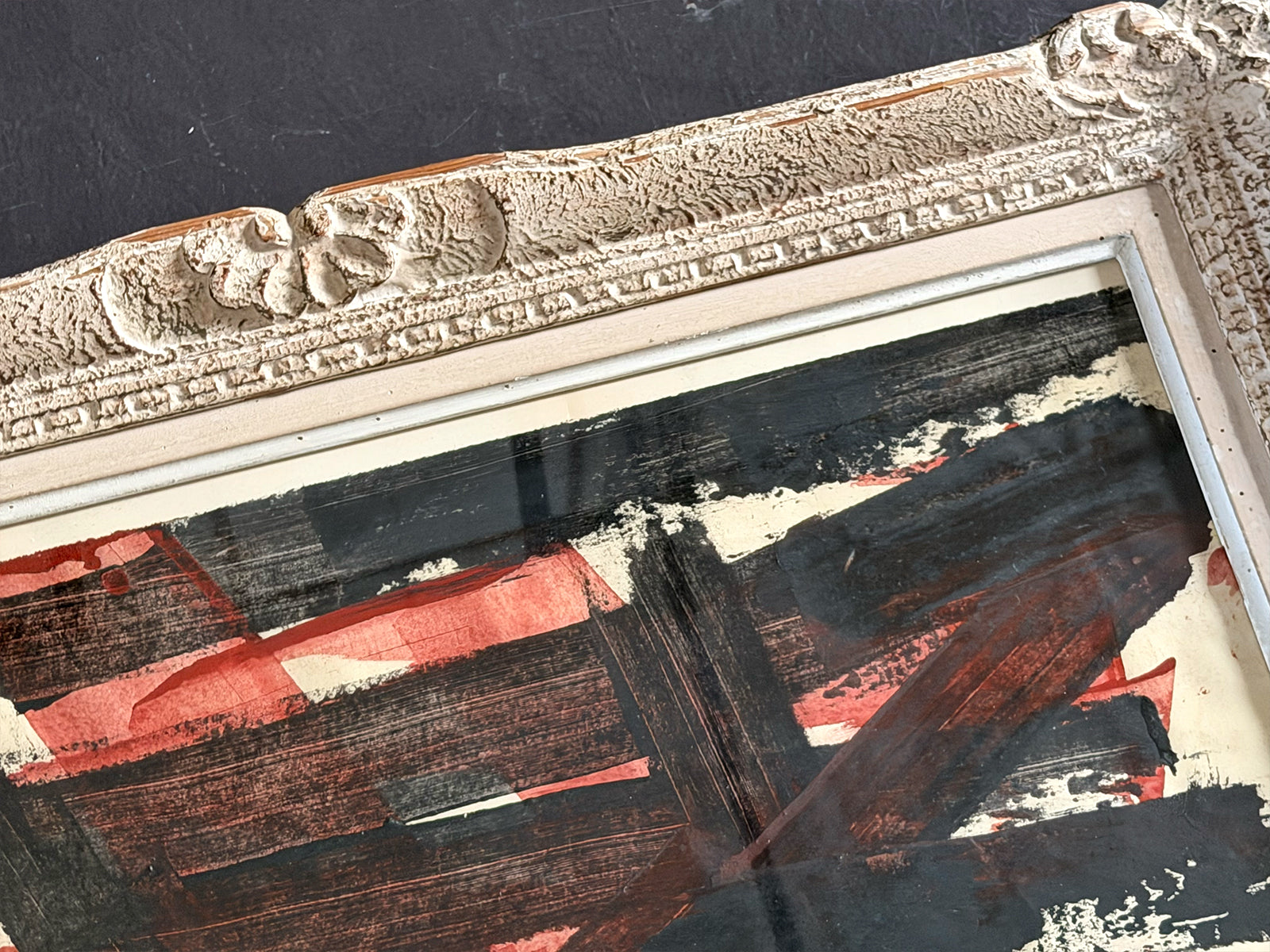 A Vintage French Abstract Red & Black Abstract Artwork in Montparnasse Frame
