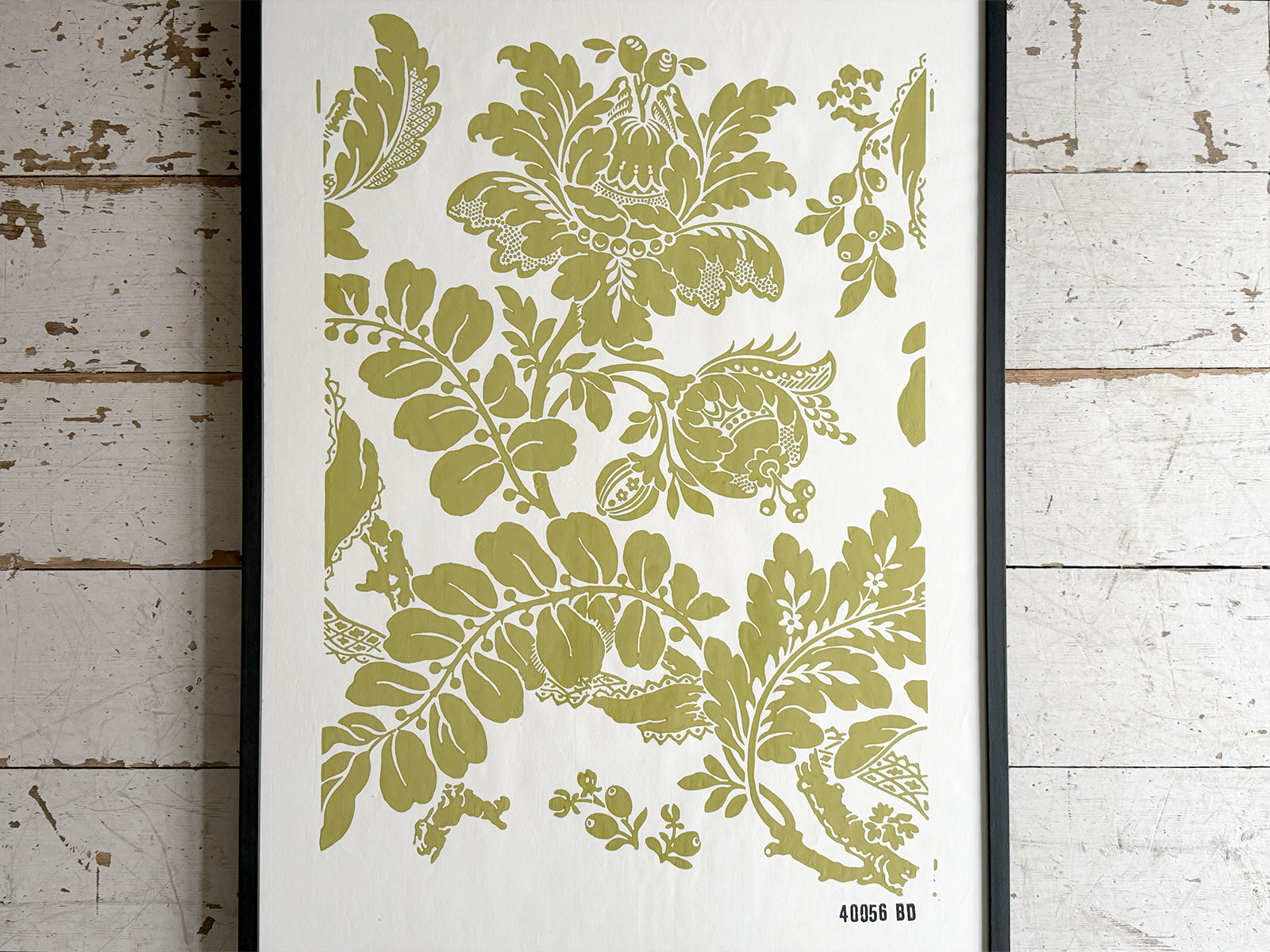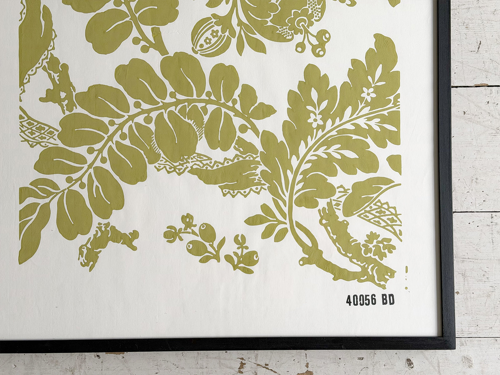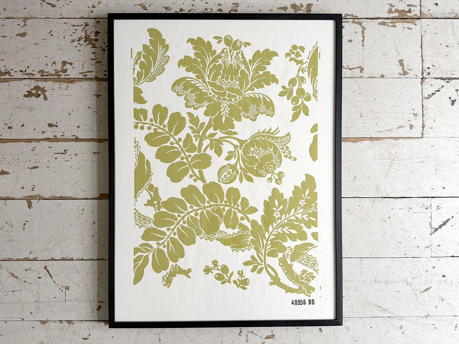 We were excited to find this large 1950's Zuber sample book containing page after page of beautiful Zuber wallpaper designs, hand block printed in wonderful colourways.  We have selected eight of these samples and framed them in simple, contemporary frames. Some of them include a strip of the sample with a glazed coating. Because of their large size, these pieces are wonderful as a stand artwork and even better in a group.