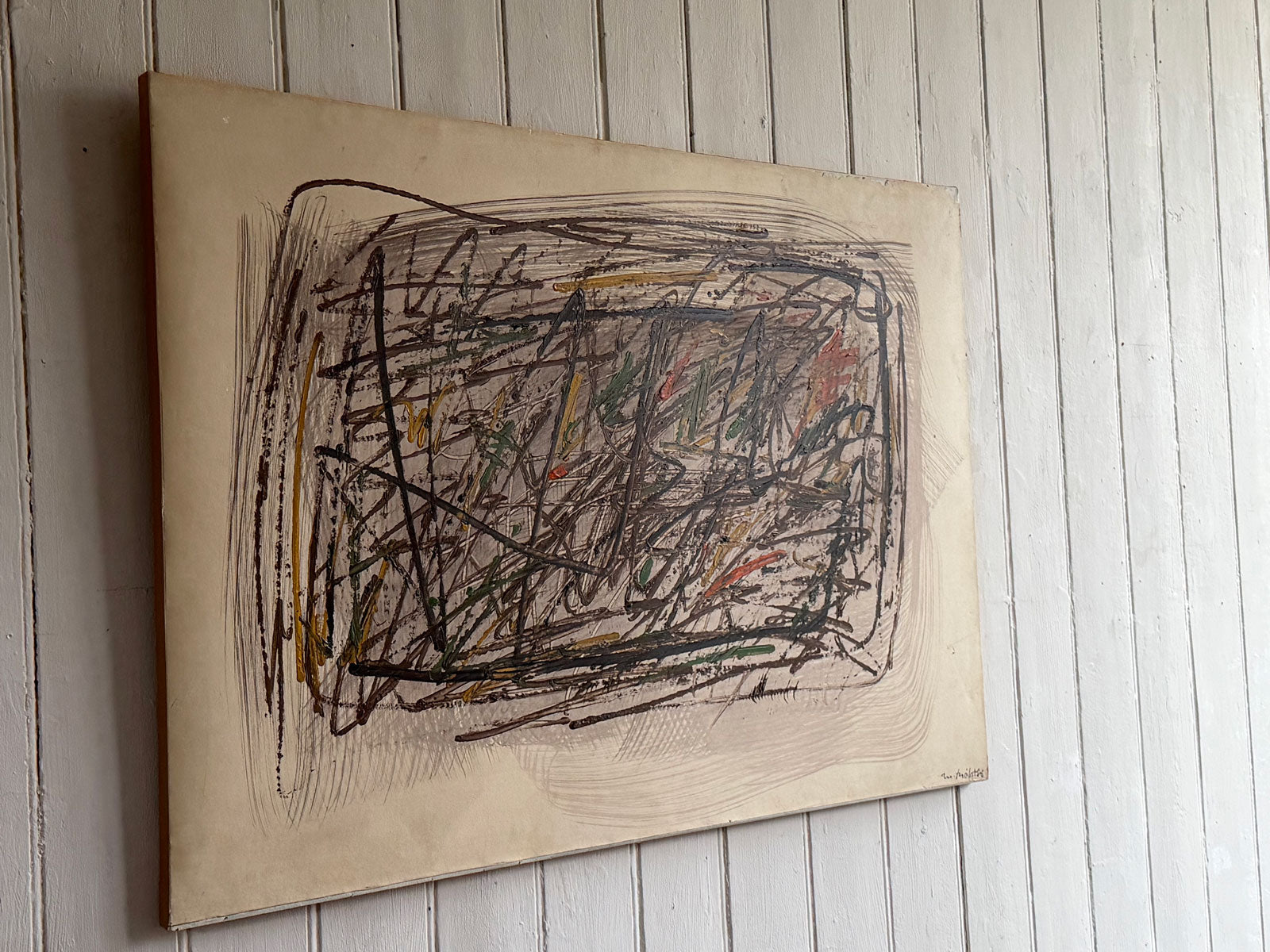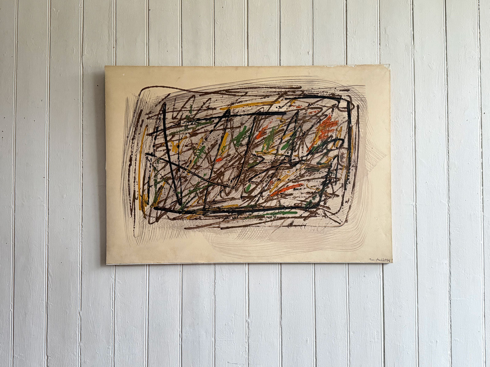 A 1980's untitled acrylic on paper mounted on canvas by Belgian artist Marcel Mélot (1909-2000).