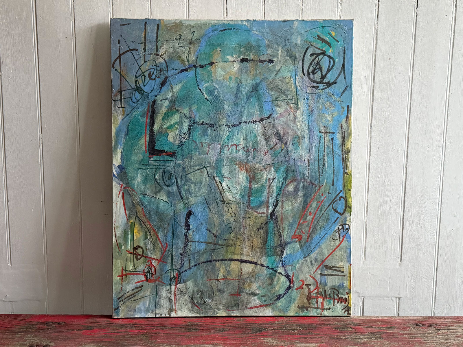 An expressive 1960's blue abstract by French artist, Patrick Bouchon (1944-1988). This canvas is signed to the bottom right hand corner.