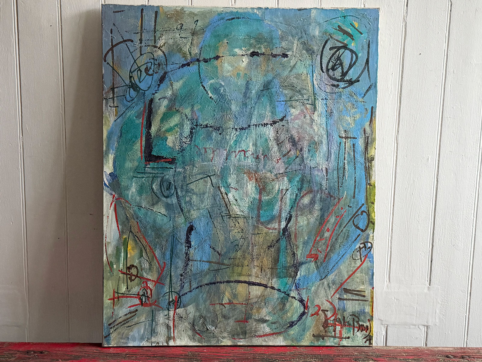 Untitled Abstract in Blue Oil on Canvas by Patrick Bouchon